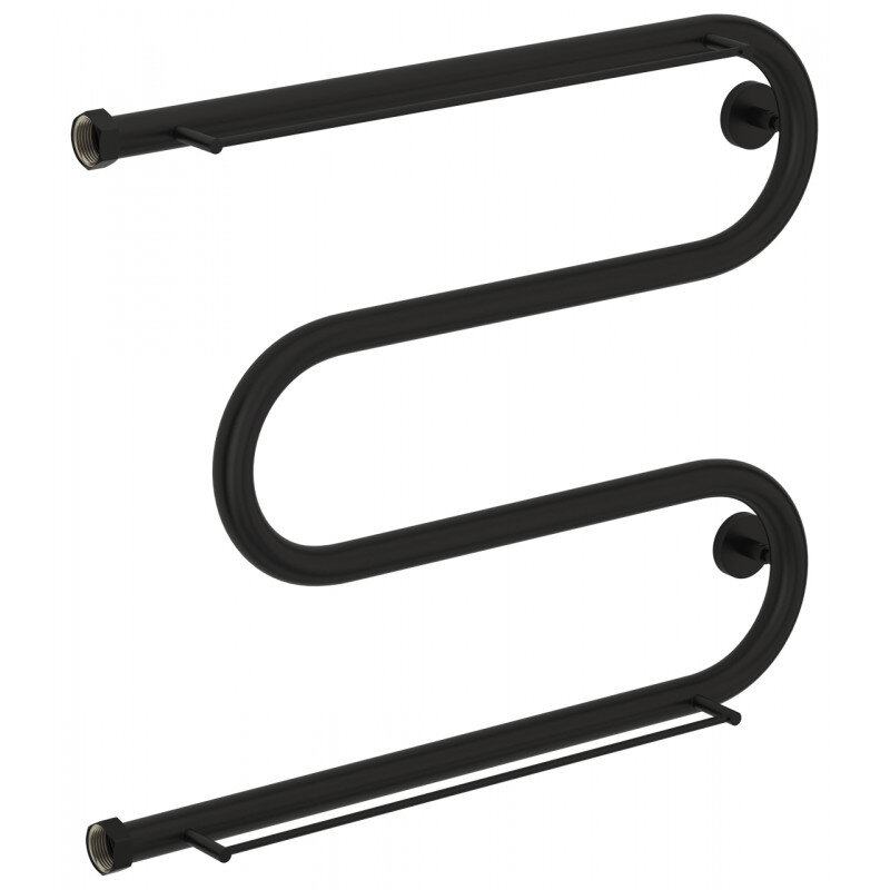 Полотенцесушитель водяной Сунержа М-образный+ 31-4008-5065, высота 50 см, ширина 65 см, боковое подключение 50 см, с 2 полками, цвет матовый черный