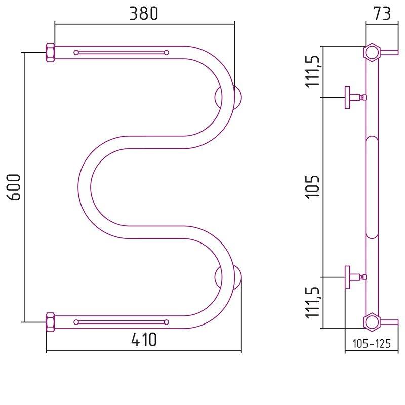 Полотенцесушитель водяной Сунержа М-образный+, высота 40 см, ширина 60 см, боковое подключение 60 см, 2 полки, цвет хром, 00-4008-6040