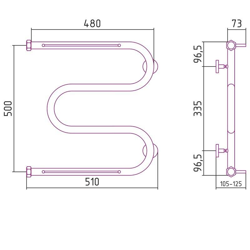 Полотенцесушитель водяной Сунержа М-образный+, высота 50 см, ширина 50 см, боковое подключение 50 см, 2 полки, цвет хром, 00-4008-5050