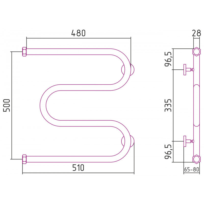 Полотенцесушитель водяной Сунержа М-образный+, высота 50 см, ширина 50 см, боковое подключение 50 см, цвет золото, 03-4007-5050