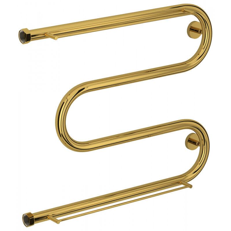 Полотенцесушитель водяной Сунержа М-образный+, высота 50 см, ширина 65 см, боковое подключение 50 см, с 2 полками, цвет золото, 03-4008-5065