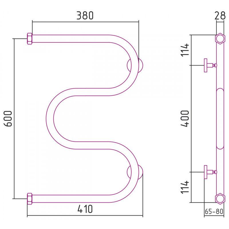 Полотенцесушитель водяной Сунержа М-образный+, высота 60 см, ширина 40 см, боковое подключение 60 см, цвет шампань, 020-4007-6040