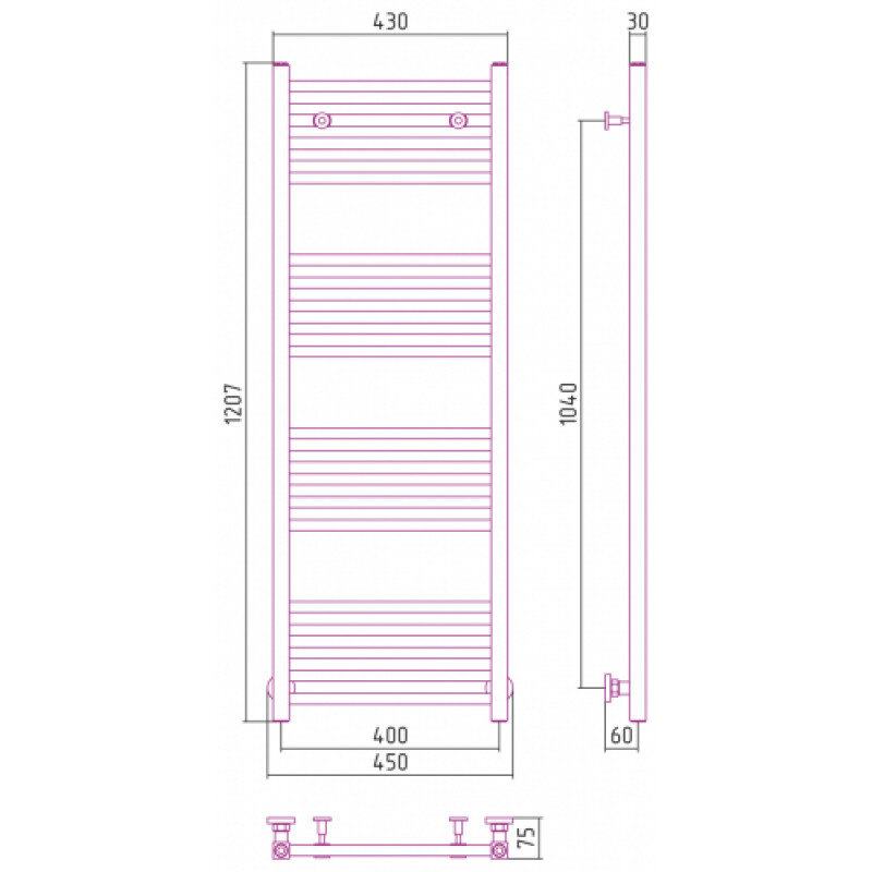 Полотенцесушитель водяной Сунержа Модус 071-0250-1240, высота 120 см, ширина 40 см, универсальное подключение, цвет сатин