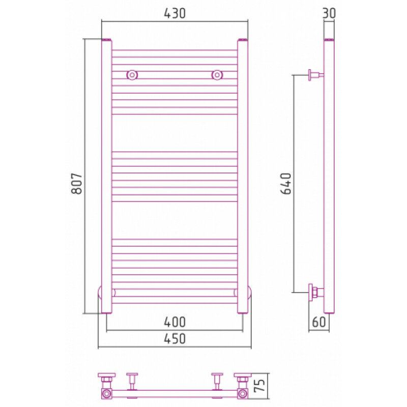 Полотенцесушитель водяной Сунержа Модус 071-0250-8040, высота 80 см, ширина 40 см, универсальное подключение, цвет сатин