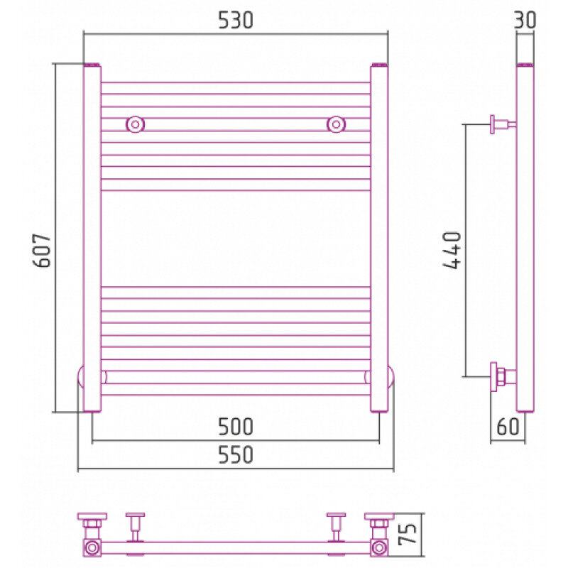 Полотенцесушитель водяной Сунержа Модус 1015-0250-6050, высота 60 см, ширина 50 см, универсальное подключение, цвет светлая слоновая кость