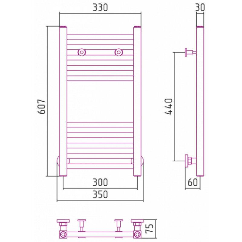 Полотенцесушитель водяной Сунержа Модус 31-0250-6030, высота 60 см, ширина 30 см, универсальное подключение, цвет матовый черный