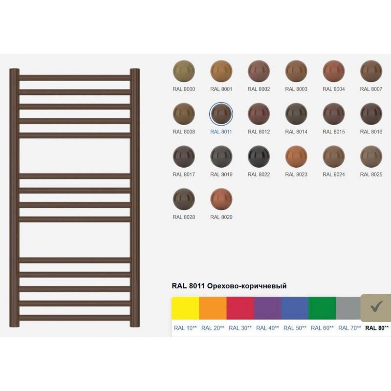 Полотенцесушитель водяной Сунержа Модус 8011-0250-8050, высота 80 см, ширина 50 см, универсальное подключение, цвет орехово-коричневый