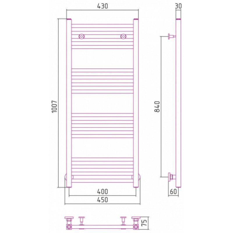 Полотенцесушитель водяной Сунержа Модус, высота 100 см, ширина 40 см, универсальное подключение, цвет золото, 03-0250-1040