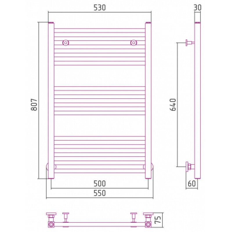 Полотенцесушитель водяной Сунержа Модус, высота 80 см, ширина 50 см, универсальное подключение, цвет матовая шампань, 022-0250-8050