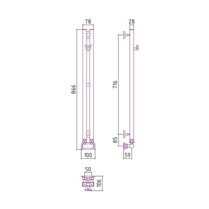 Полотенцесушитель водяной Сунержа Нюанс EU50+, 84 х 5 см, хром, 00-0212-0840