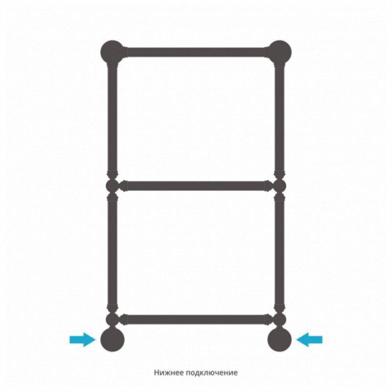 Полотенцесушитель водяной Сунержа Ренессанс 1304 15-0280-8650, высота 86 см, ширина 50 см, нижнее подключение, цвет тёмный титан муар