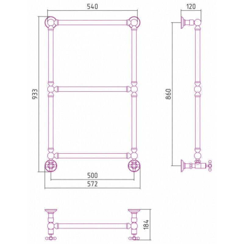Полотенцесушитель водяной Сунержа Ренессанс 1304 31-0280-8650, высота 86 см, ширина 50 см, нижнее подключение, цвет матовый черный