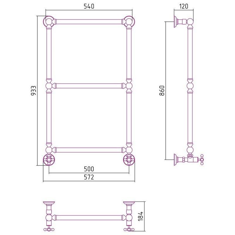 Полотенцесушитель водяной Сунержа Ренессанс 1304, ширина 50 см высота 85 см, нижнее подключение, хром, 00-0280-8650