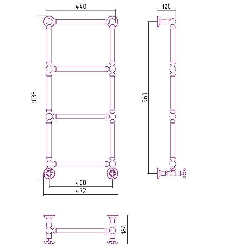 Полотенцесушитель водяной Сунержа Ренессанс 1304, высота 96 см, ширина 40 см, цвет шампань, 020-0280-9640