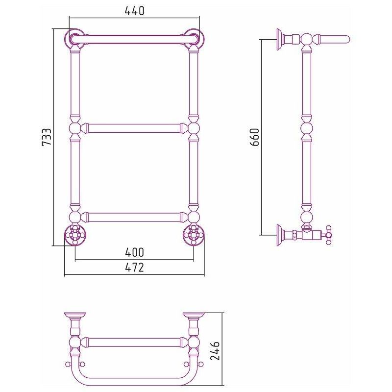 Полотенцесушитель водяной Сунержа Ренессанс 1386, ширина 40 см высота 65 см, с полкой, нижнее подключение, хром, 00-0281-6640