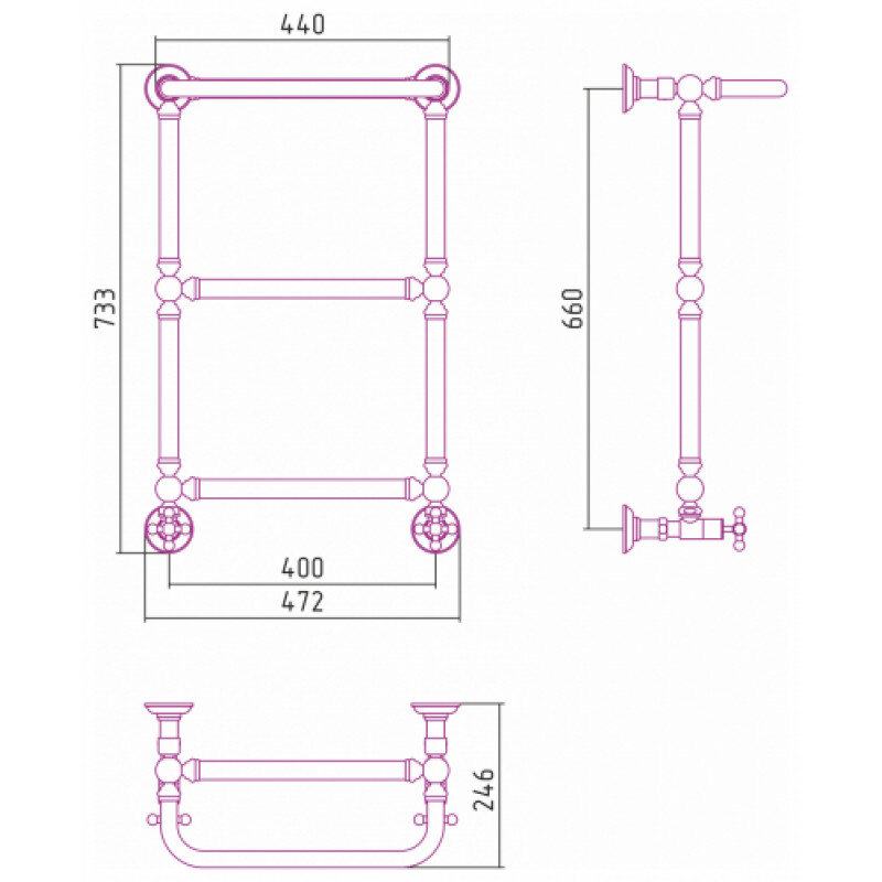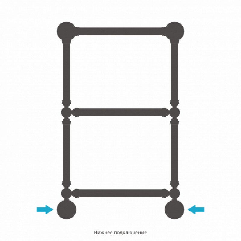 Полотенцесушитель водяной Сунержа Ренессанс 1386, высота 66 см, ширина 40 см, нижнее подключение 40 см, с полкой, цвет состаренная бронза, 05-0281-6640