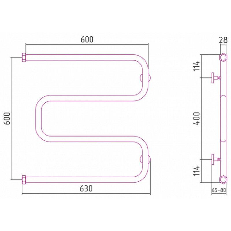 Полотенцесушитель водяной Сунержа Ш-образный, высота 60 см, ширина 60 см, боковое подключение 60 см, цвет матовое золото, 032-0014-6060