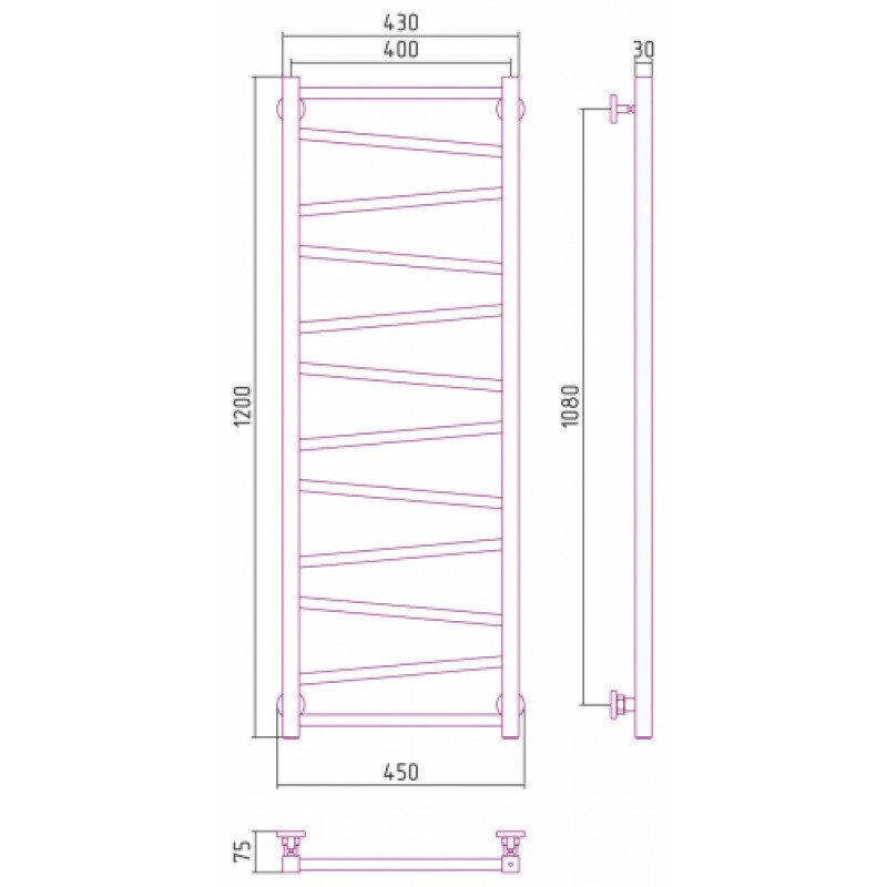 Полотенцесушитель водяной Сунержа Сирокко 30-0253-1240, высота 120 см, ширина 40 см, нижнее подключение, цвет белый матовый