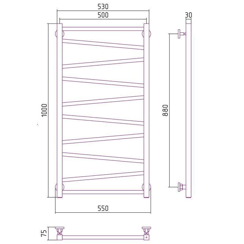 Полотенцесушитель водяной Сунержа Сирокко, высота 100 см, ширина 50 см, цвет шампань, 020-0253-1050