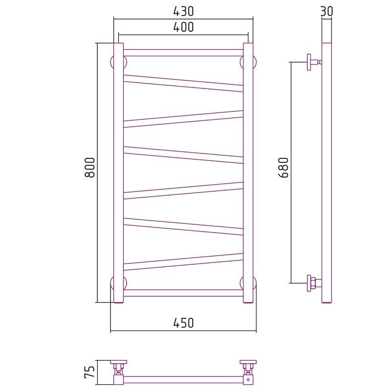 Полотенцесушитель водяной Сунержа Сирокко, высота 80 см, ширина 40 см, цвет шампань, 020-0253-8040