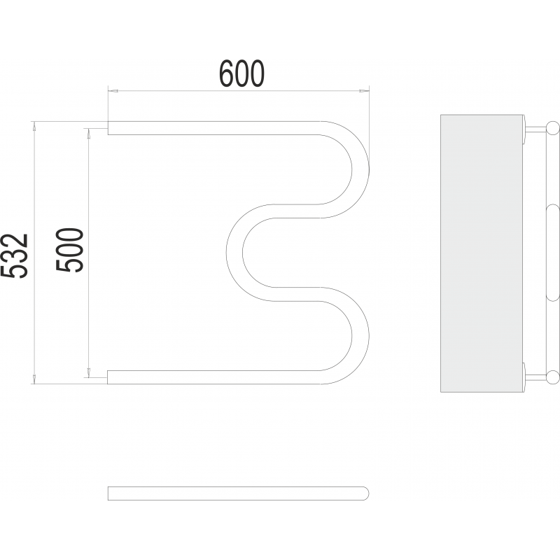 Полотенцесушитель водяной TERMINUS М-образный 600x532 бесшовный
