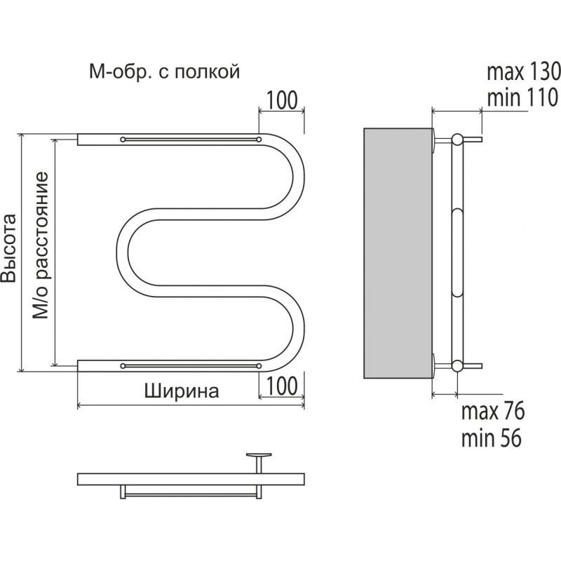 Полотенцесушитель Terminus М-образный с полкой 500х600