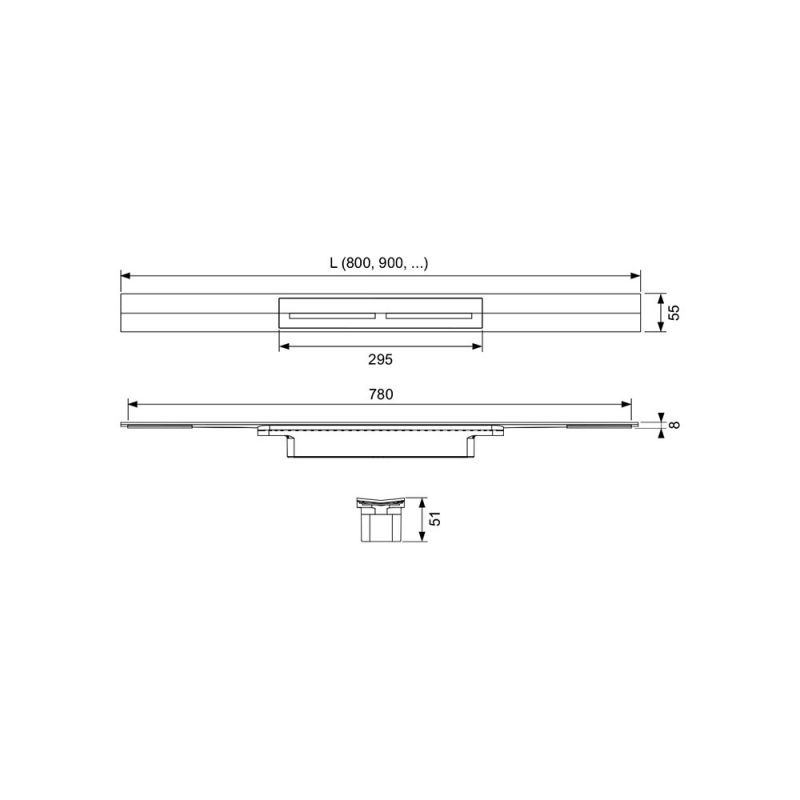 Профиль для душа TECEdrainprofile с цветным PVD покрытием ,900*55 сатин, черный