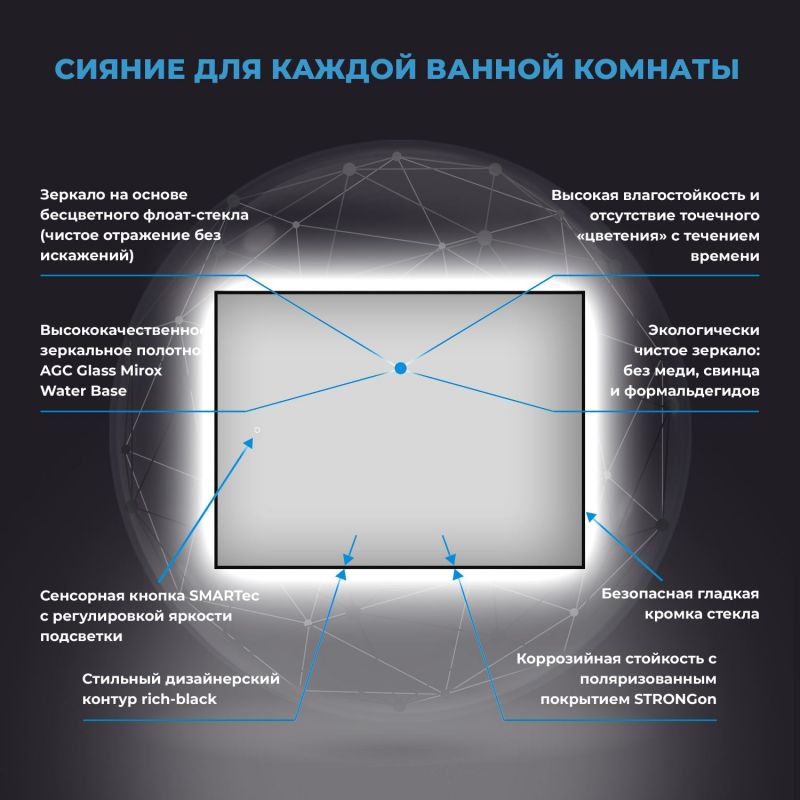 Прямоугольное зеркало с фоновой LED-подсветкой Wellsee 7 Rays' Spectrum 172200830