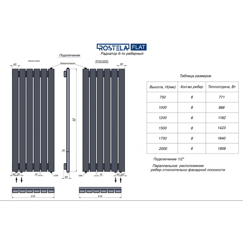 Радиатор Ростела Flat 6 / 410х1750 черный муар 9005