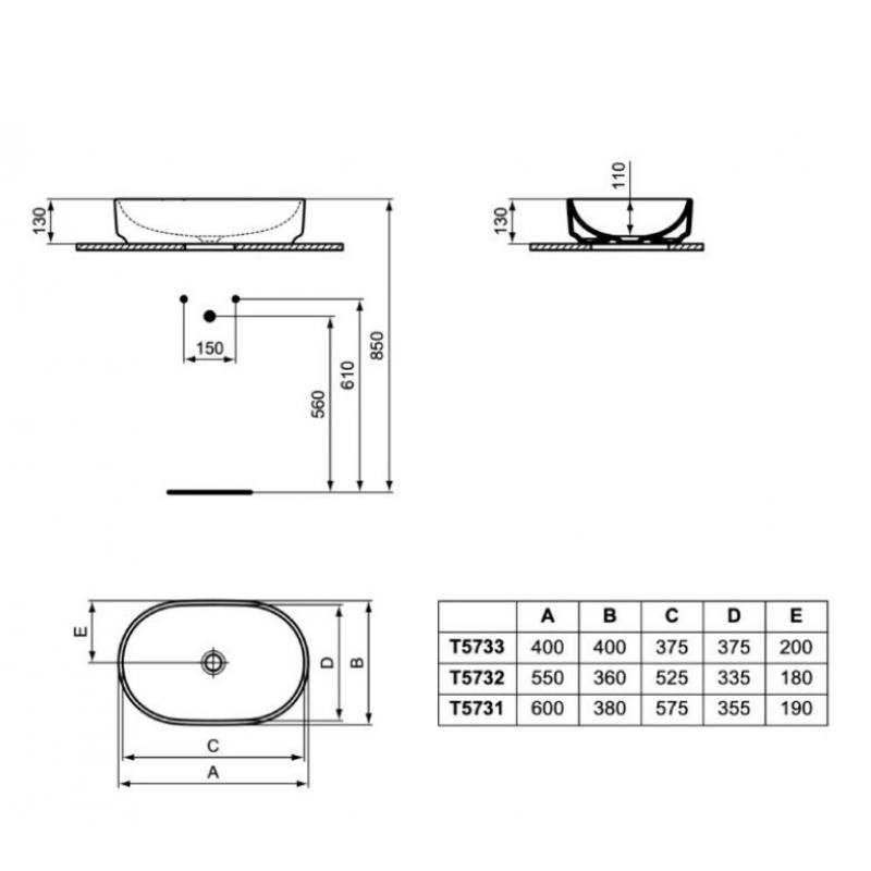 Раковина-чаша овальная 60х38 см, Ideal Standart IS i.life O, T573101