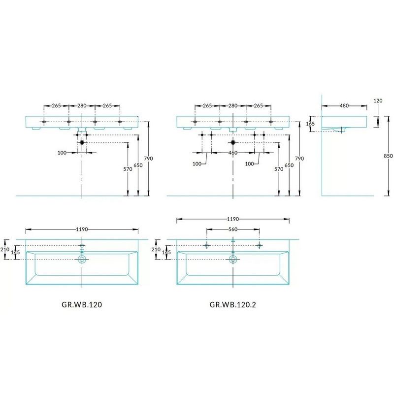 Раковина Kerama Marazzi GRANDE 120x48 см с крепежом арт. GR.wb.120