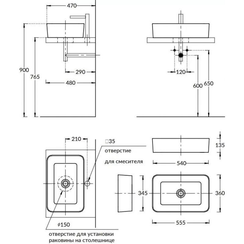 Раковина Kerama Marazzi PLAZA накладная 55x36 прямоугольная, PLR.wb.55q