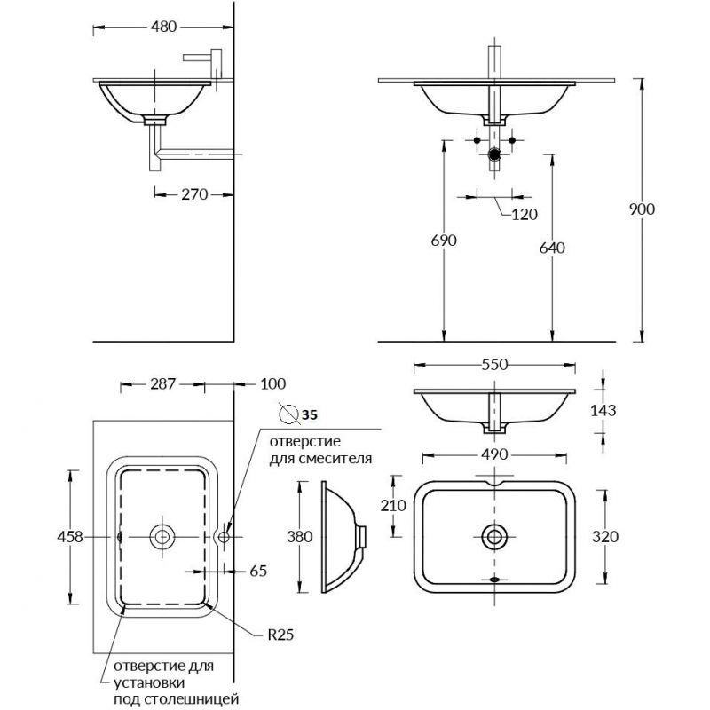 Раковина Kerama Marazzi PLAZA 55х38 см, встраиваемая снизу, PLR.wbu.55