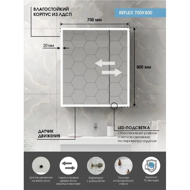 Шкаф с зеркалом Континент Reflex LED 70x80 с подсветкой и датчиком движения