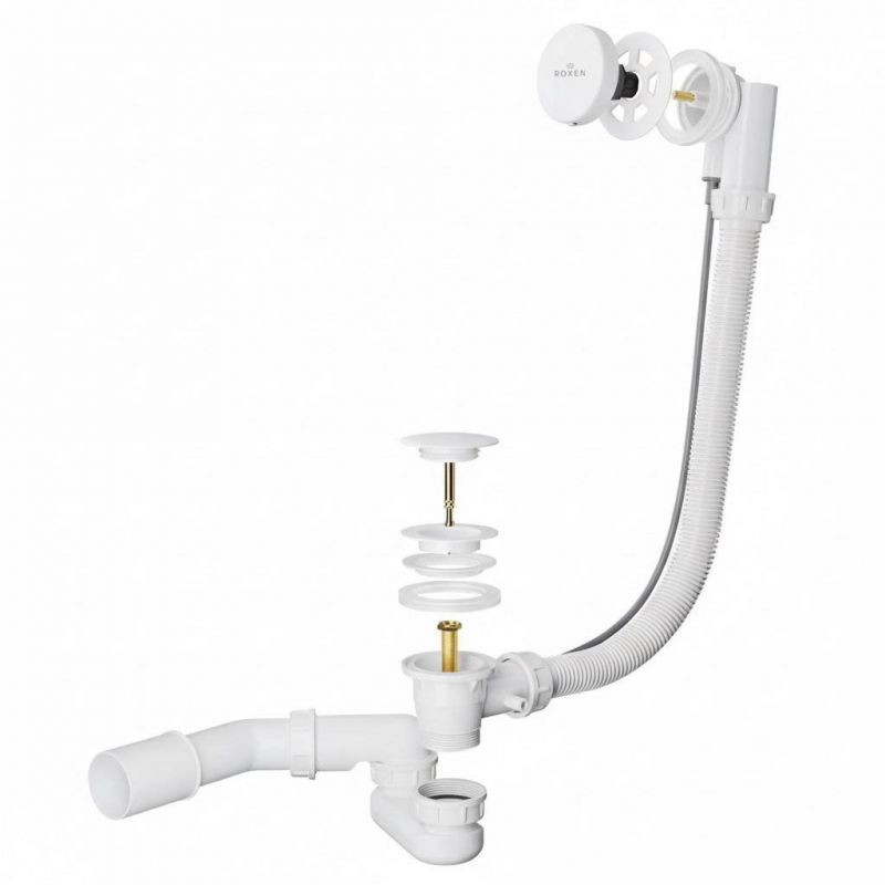 Сифон для ванны Roxen R70A-W полуавтомат белый глянцевый