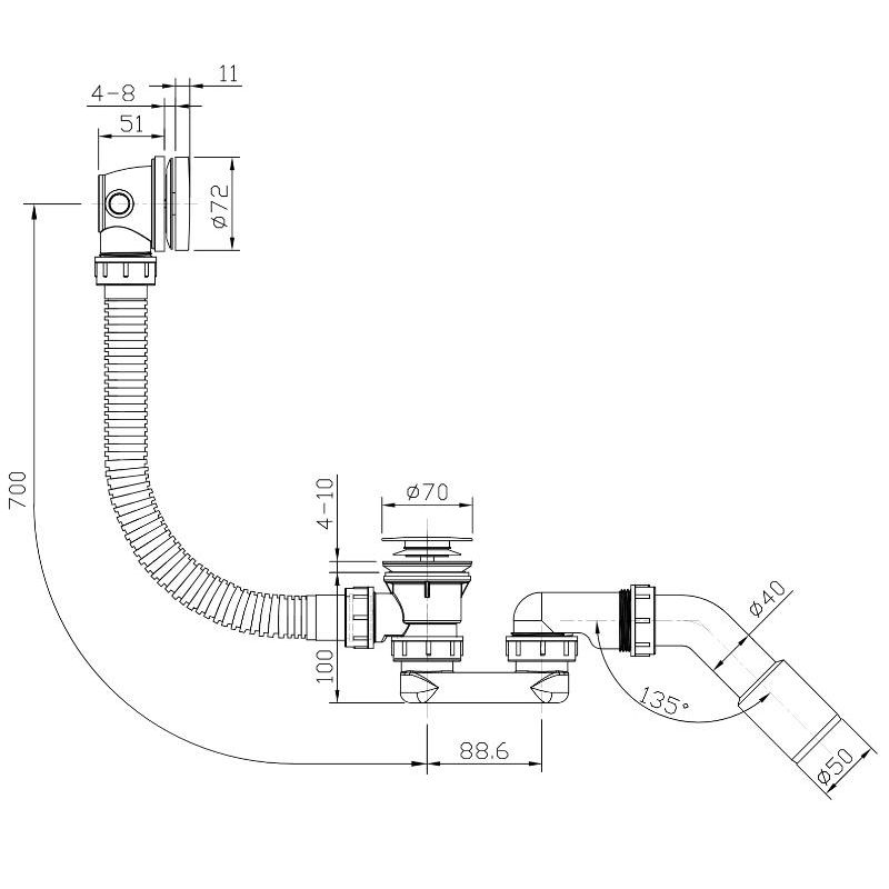 Сифон для ванны Roxen R70C-CH клик-клак хром