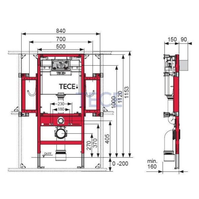 Модуль унитаза для монтажа на профиле TECEprofil, застенного монтажа на профилях или перед несущей стеной. Для без барьерной конструкции с приподнятым монтажом унитаза. Модуль с боковыми стальными рамками и каналами для прокладки кабелей, включая крепежные элементы.