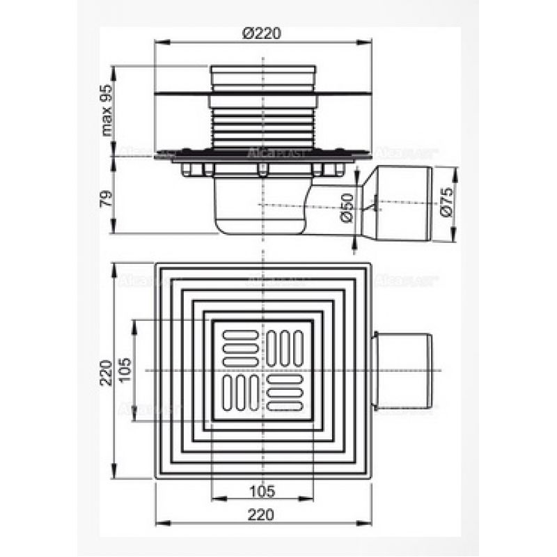 Сливной трап Alcaplast APV3344 105x105/50/75