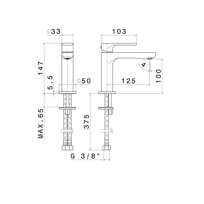 Смеситель для раковины OLE однорычажный без донного клапана 3/8, матовый черный