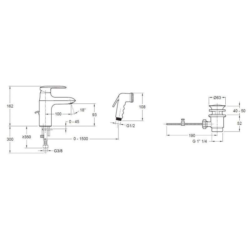 Смеситель для умывальника с псевдобиде Jacob Delafon Kumin E99465-CP