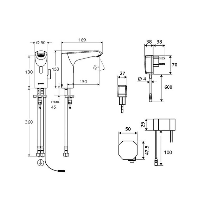 Смеситель для умывальника Schell Xeris E HD-M, 230V сеть, сенсорный 012540699
