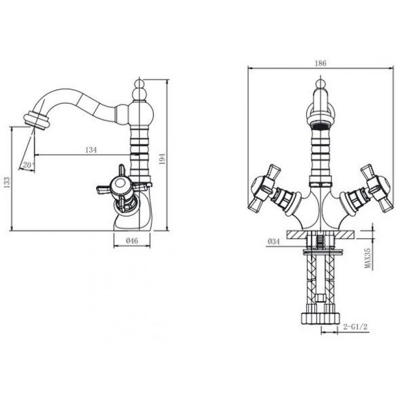 Смеситель для умывальника Caprigo Bristol 21-526-VOT