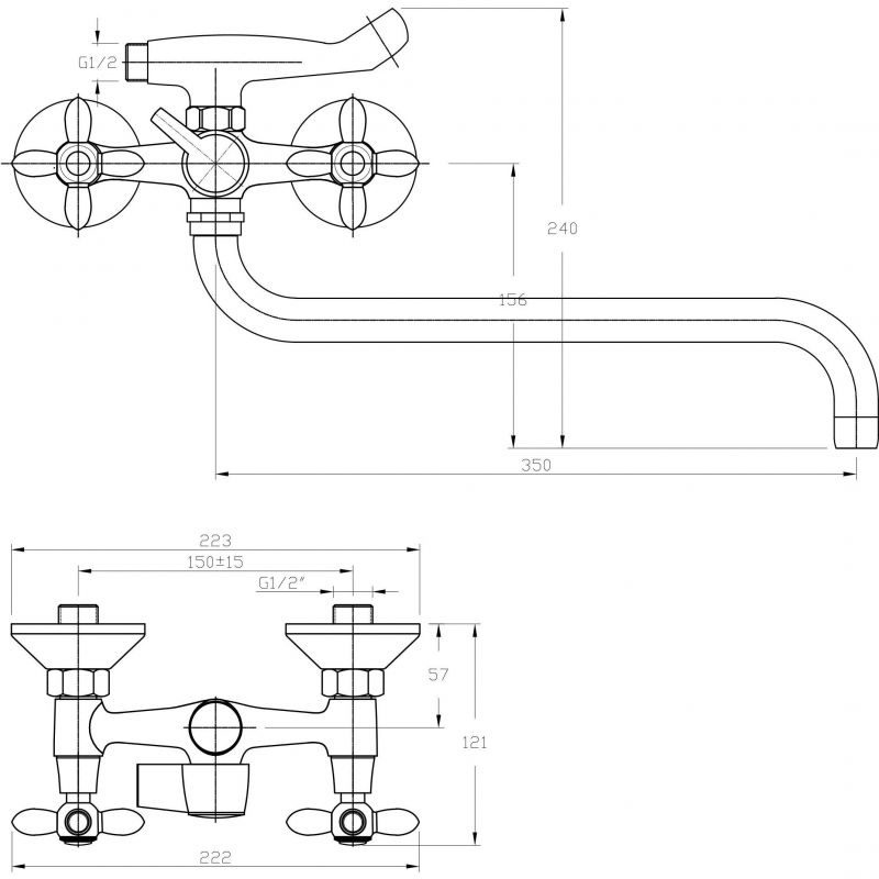 Смеситель для ванны длинный излив с керамической ручкой Haiba HB2018