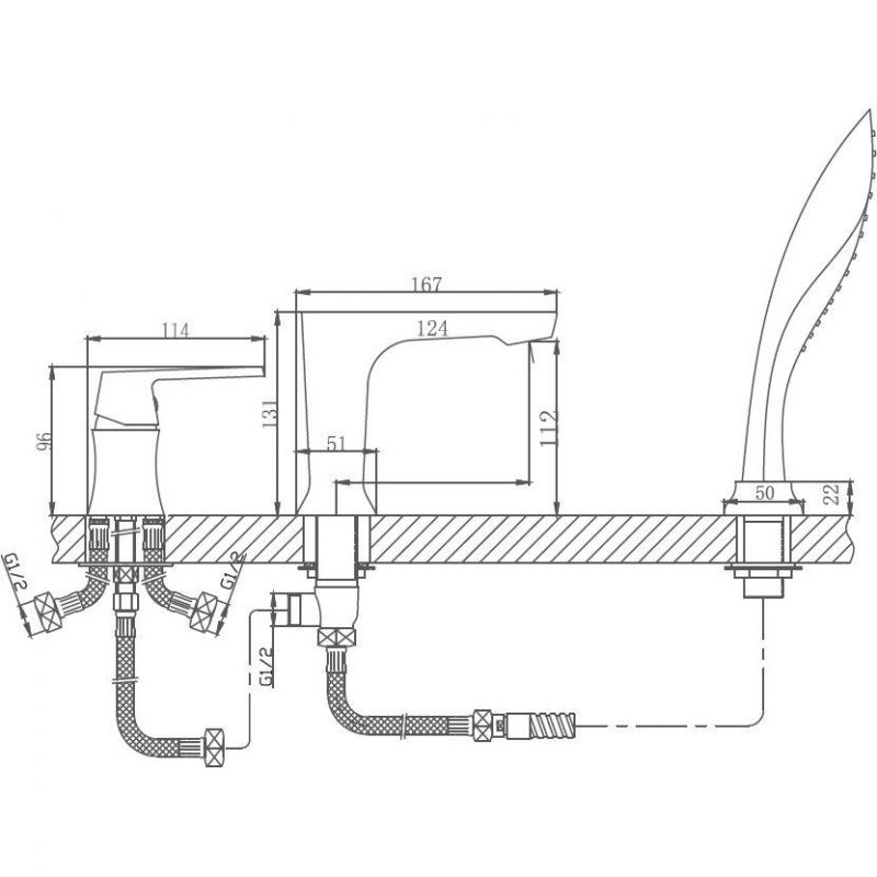 Смеситель для ванны на 3 отверстия Haiba HB80804