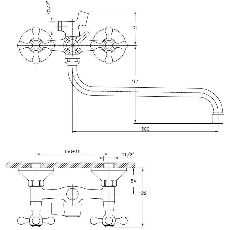 Смеситель для ванны с длинным изливом Haiba HB2208-2