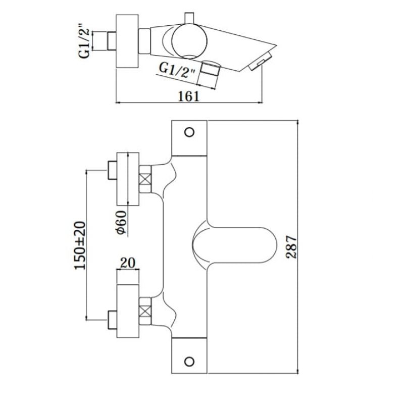 Смеситель для ванны с душем (нерж. сталь) Paffoni Light LIQ023ST