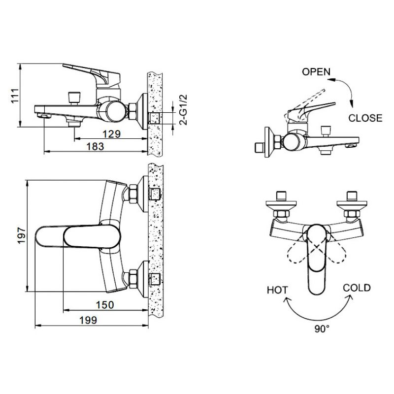 Смеситель для ванны с коротким изливом Bravat ELER F6191238CP-01-RUS