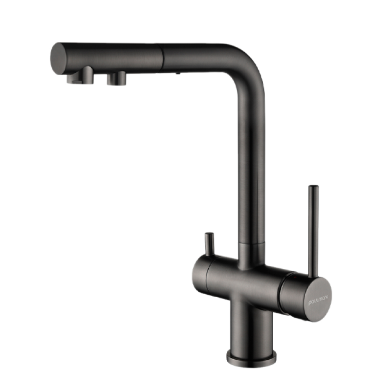 Смеситель PAULMARK SERPENTINE Se213222-GM, (черный/вороненая сталь)