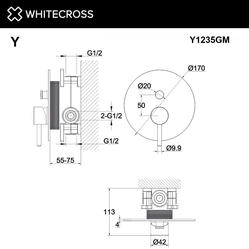 Смеситель Whitecross Y brushed nickel Y1235NIB для душа, цвет никель брашированный