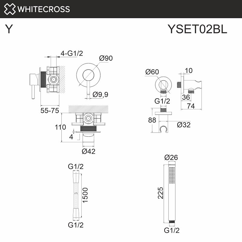 Смеситель Whitecross Y gold YSET02GL для душа, с душевым гарнитуром, цвет золото